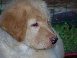 04.07.2010 Nachdem Butz nun also wie wir finden seine perfekte Familie gefunden hat und am 10.Juli abgeholt wird, suchen wir noch für Buran seine eigenen Menschen. Mitten im Zahnwechsel erfreut sich unser kleiner "Gelber" bester Gesundheit, vollem Tatendrang und unerschütterlich guter Laune. Durch die Wärme sind die Möglichkeiten der Ausflüge ein wenig eingeengt, so daß es jeden Tag heißt, baden und schwimmen gehen. Beide lieben es sehr. Sie wachsen und wachsen und entwickeln sich sehr schön. Es heißt also weiterhin warten! |