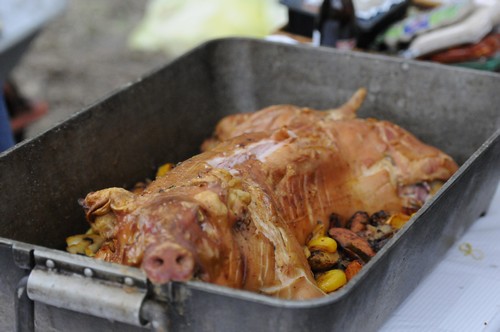 habt) und das eigens angelieferte Spanferkel, viele andere Leckereien, Salate